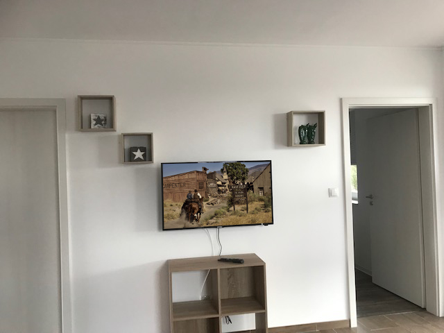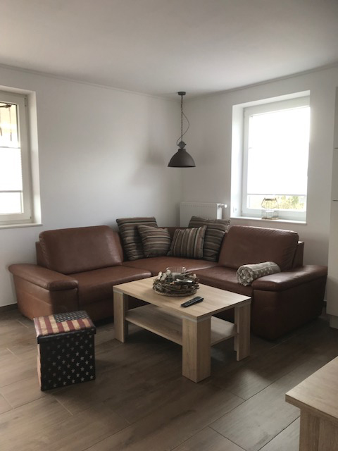 Der Wohnbereich ist mit einem gemütlichen Sofa ausgestattet. Ein TV steht natürlich zur Verfügung. Im Essbereich befindet sich ein Tisch mit drei Stühlen sowie einer Sitzbank, dort ist Platz für 6 Personen. Für Kinder ist ein Hochstuhl vorhanden.