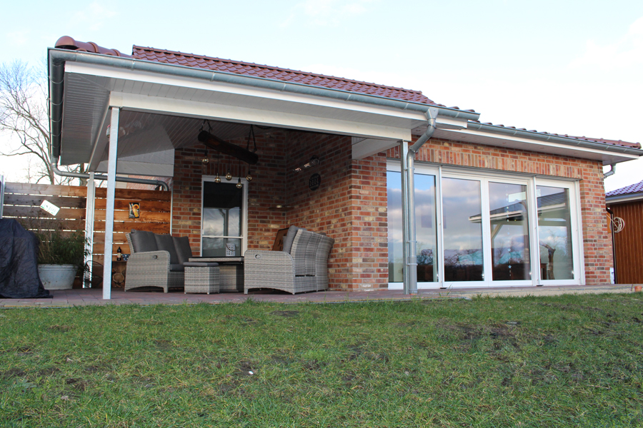 Eine große Terrasse mit Gartenmöbeln lädt zum Verweilen ein – bei schönem Wetter der perfekte Ort. Dort finden Sie auch einen Grill.