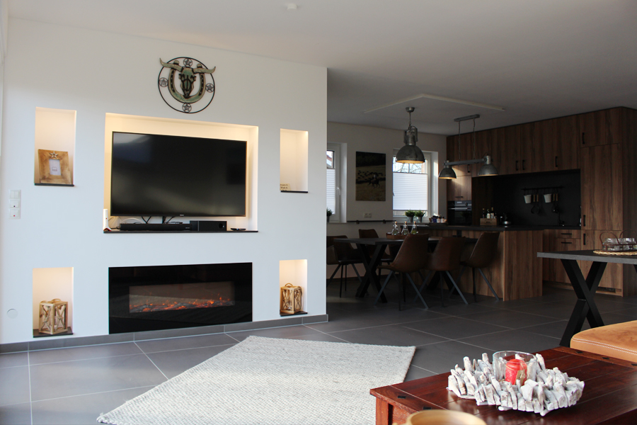 Der Wohnbereich verfügt über eine großzügige Sofalandschaft für gemütliche Abende – ein TV ist natürlich ebenfalls vorhanden. Der Essbereich bietet einen Tisch mit sechs Stühlen für bis zu 6 Personen. Ein Kinderhochstuhl steht zur Verfügung.
